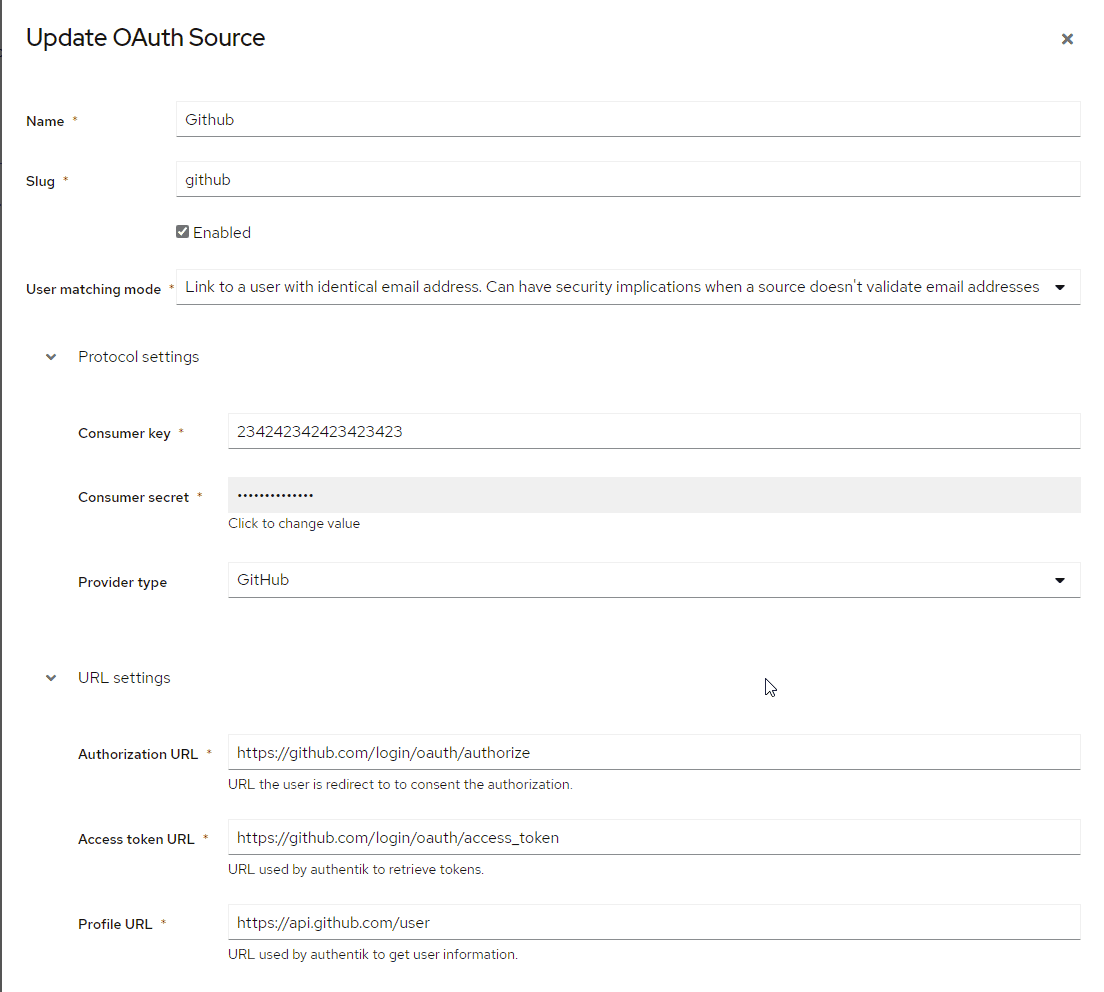 - Authorization callback URL:: https://authentik.company/source/oauth/callback/github